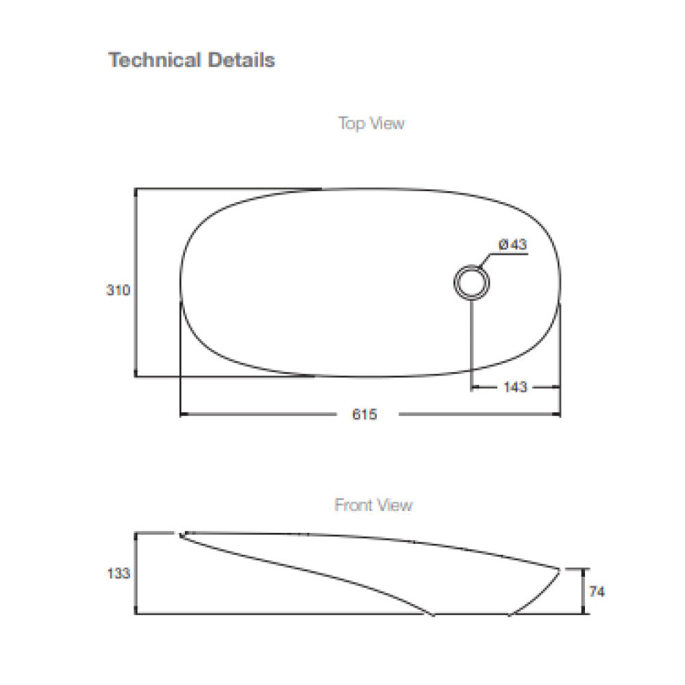 615mm (L) x 310mm (W) x 74mm - 133mm (H)