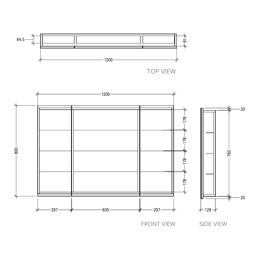 1200mm width x 800mm height x 129mm depth