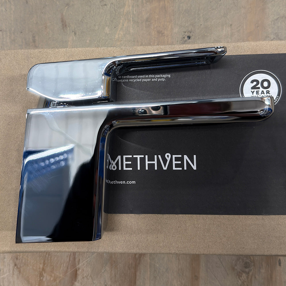 Kiri is our answer for lovers of clean lines and strong, dynamic forms. This solid architectural style makes its presence known in your bathroom and kitchen, but not on the environment.